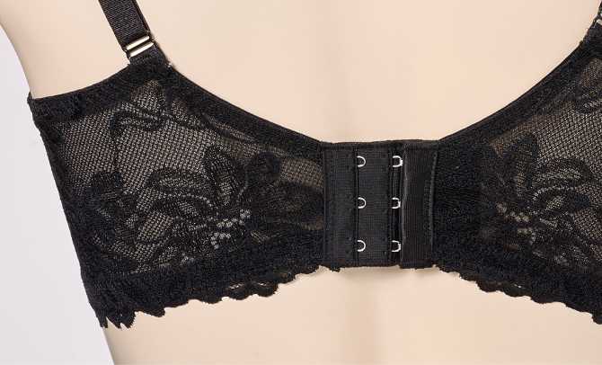 - 刺繍と背面の透け感レースの組み合わせ