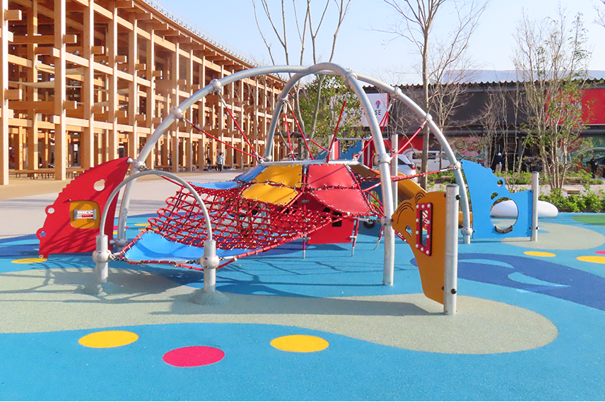 ①大阪・関西万博で活躍した大型遊具「ネットドーム」が登場