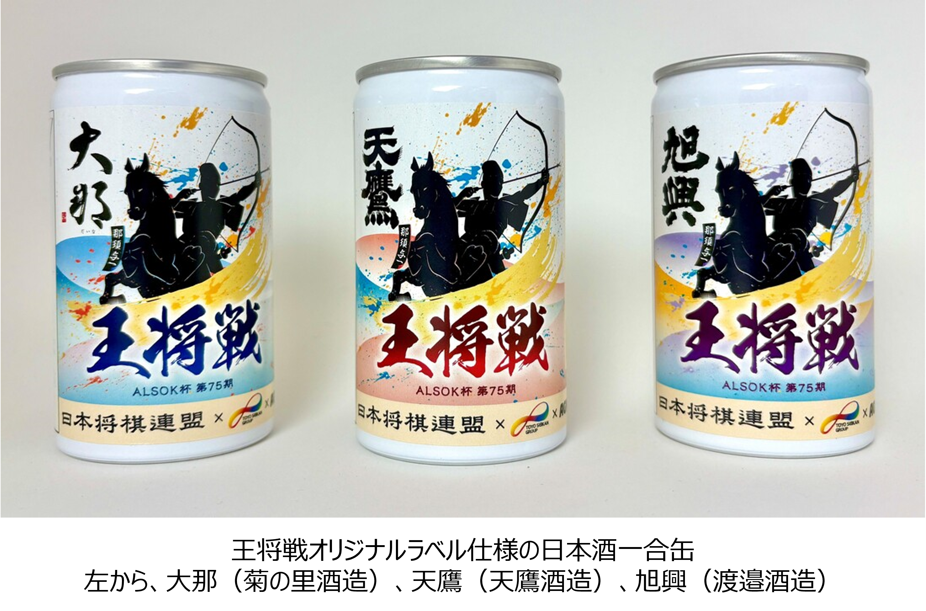 このたび、その三つ蔵である、菊の里酒造・天鷹酒造・渡邉酒造が王将戦とコラボレーションし、各銘柄がオリジナルラベル仕様の一合缶として登場しました。