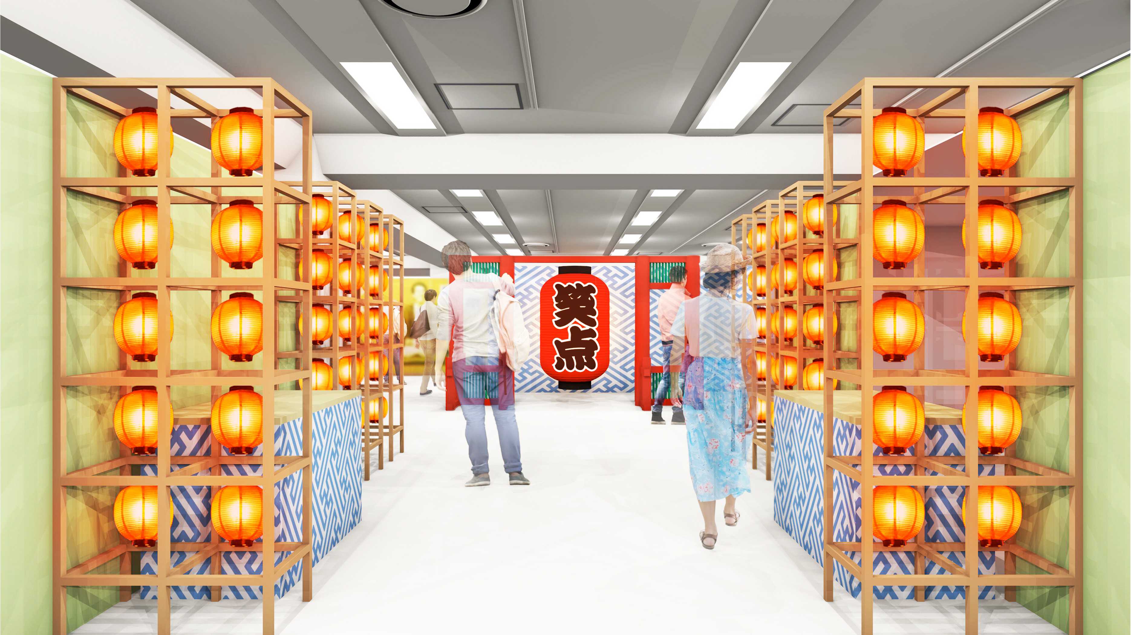 会場入口には、ズラリと並ぶ小提灯の通路、その先には本展のシンボル「巨大提灯」を飾り、皆さまをお迎えします。