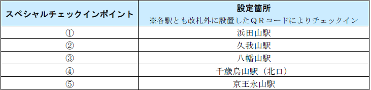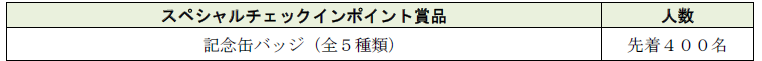 スペシャルチェックインポイントの駅いずれかにチェックインすると、先着順で記念缶バッジをプレゼントします。