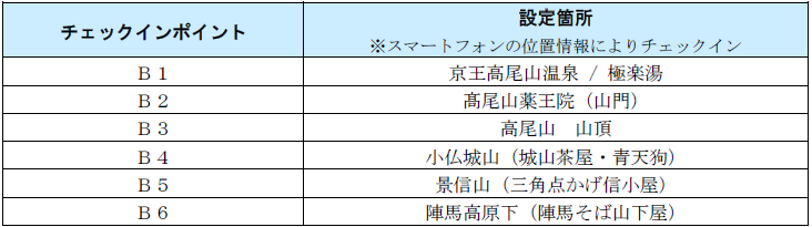 「YAMASTA」をインストールしたスマートフォンをお持ちのうえ、高尾山および陣馬山のハイキングコースを巡り、各コース全てのチェックインポイントでスタンプを取得していただきます。「高尾山ハイキングコース」「高尾・陣馬縦走コース」それぞれを達成するごとに、記念缶バッジを先着1,600名に、コース達成認定証を参加者全員にプレゼントします。さらに各コースを達成すると特製ピンズと、各コース対象の京王電鉄賞に1口ずつ応募でき、抽選で賞品が当たります。加えて、今回は京王線・井の頭線の「山」が付く駅をスペシャルチェックインポイントとして設定、「高尾山ハイキングコース」「高尾・陣馬縦走コース」いずれか達成のうえ、設定駅いずれかにチェックインすると、記念缶バッジを先着400名にプレゼントします。