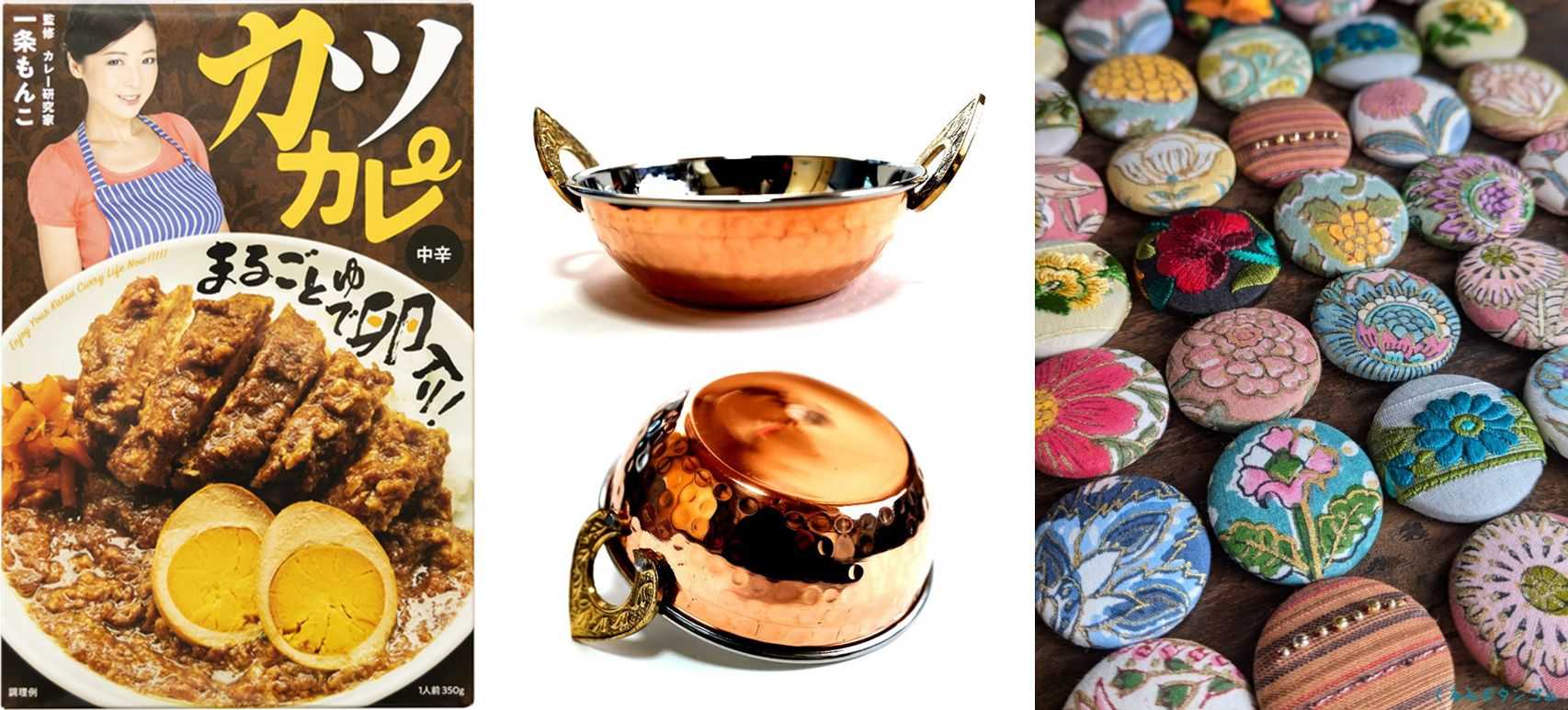 ■アジアンテイストあふれる雑貨や●種のレトルトカレーも販売します