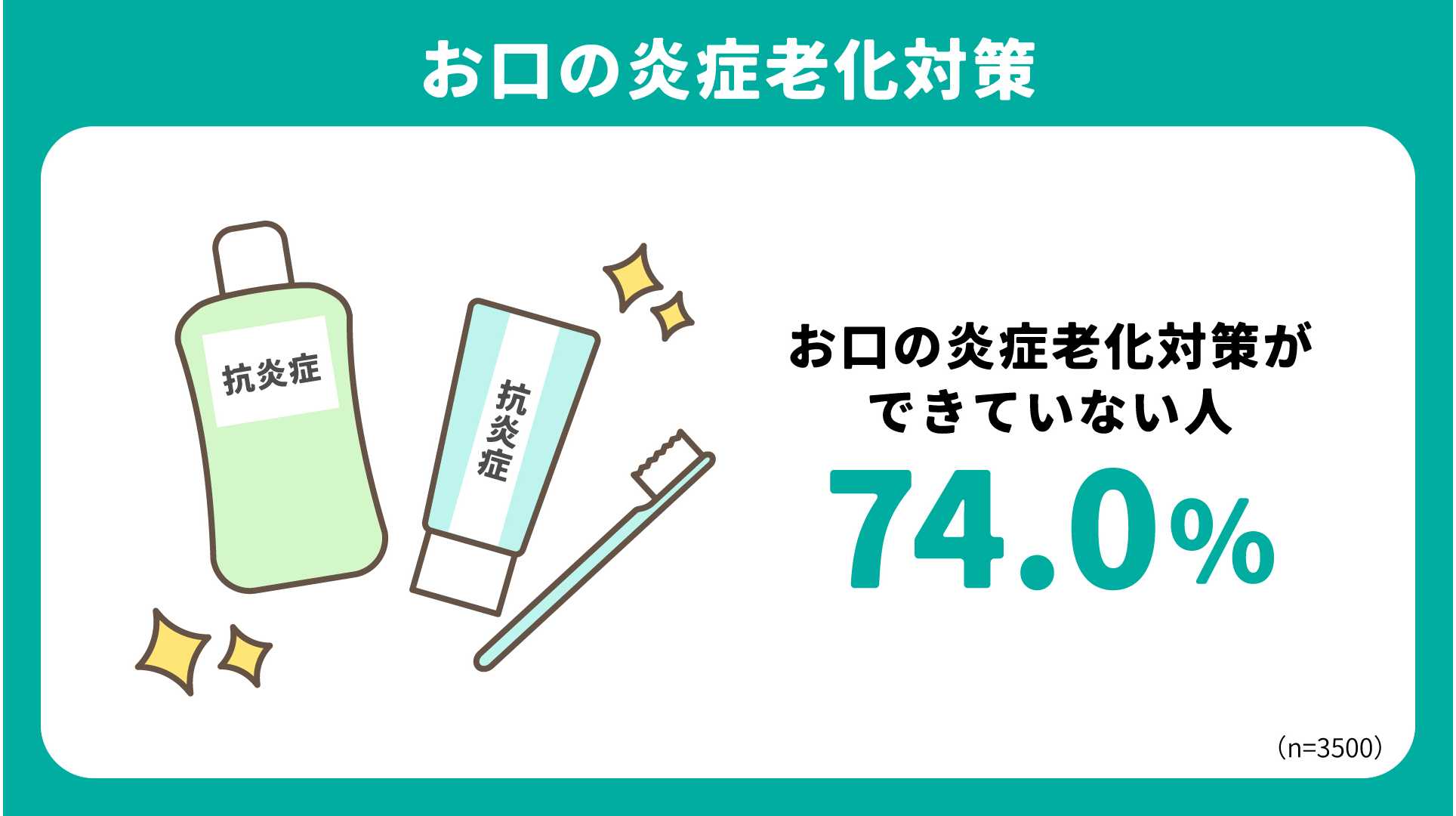 ②74%の人が、お口の炎症老化対策ができていない。「お口年齢ケア」が浸透していない実態が判明。