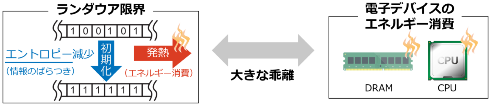 ※3. ランダウア限界:情報エントロピーが減少するような情報処理を行った場合に、最低限それに対応した発熱が生じるという熱力学第二法則(エントロピー増大則)から導かれる発熱量の下限値。