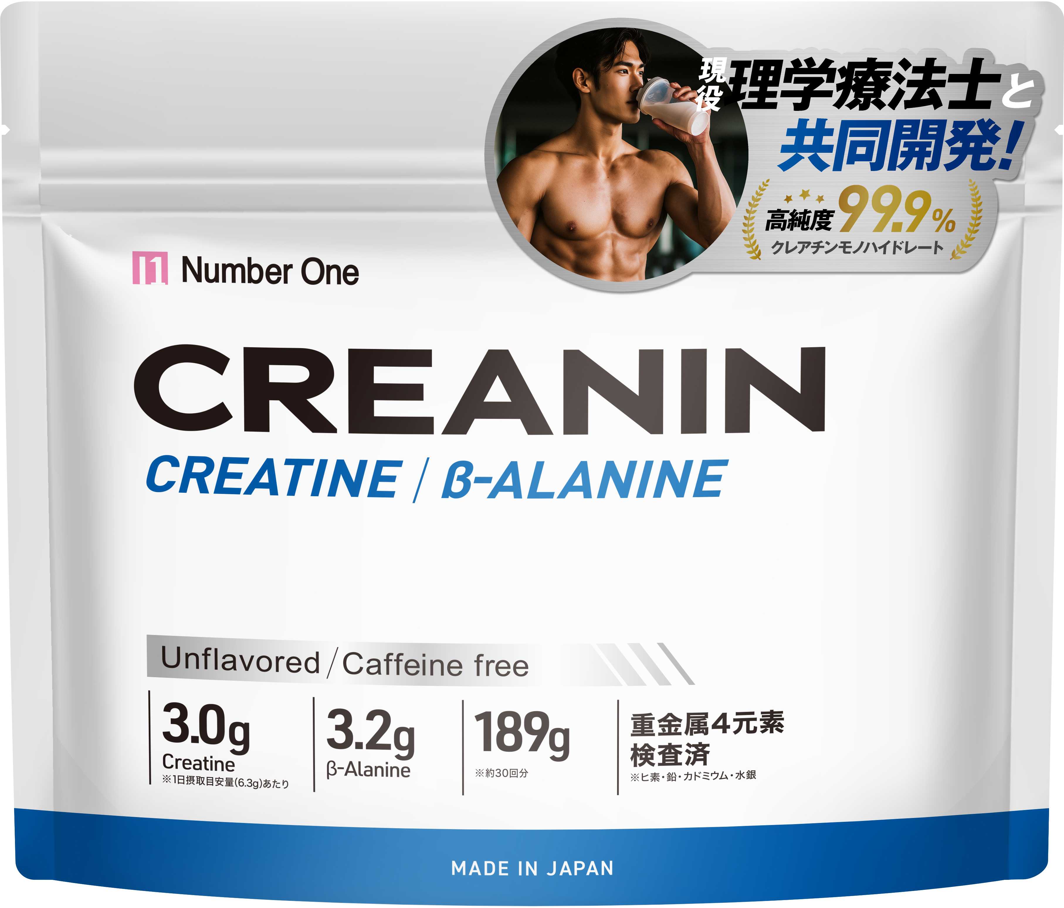 MOON-X Japan株式会社 LEVANTEカンパニーが運営する男性向けサプリメントブランド「N1 Number 1」は、高品質な純度99.9%*のクレアチンモノハイドレートとβアラニンをW(ダブル)配合したパウダー状のサプリメント『CREANIN(クレアニン)』を4月22日よりオンラインで発売しました。共同開発者は現役理学療法士・パーソナルトレーナーで、エビデンスに基づいた解説が人気の筋トレ系YouTubeチャンネル「論文で解決」。トレーニングの質にこだわり、限界に挑み続けるすべてのトレーニーを栄養補給を通じて強力にバックアップします。