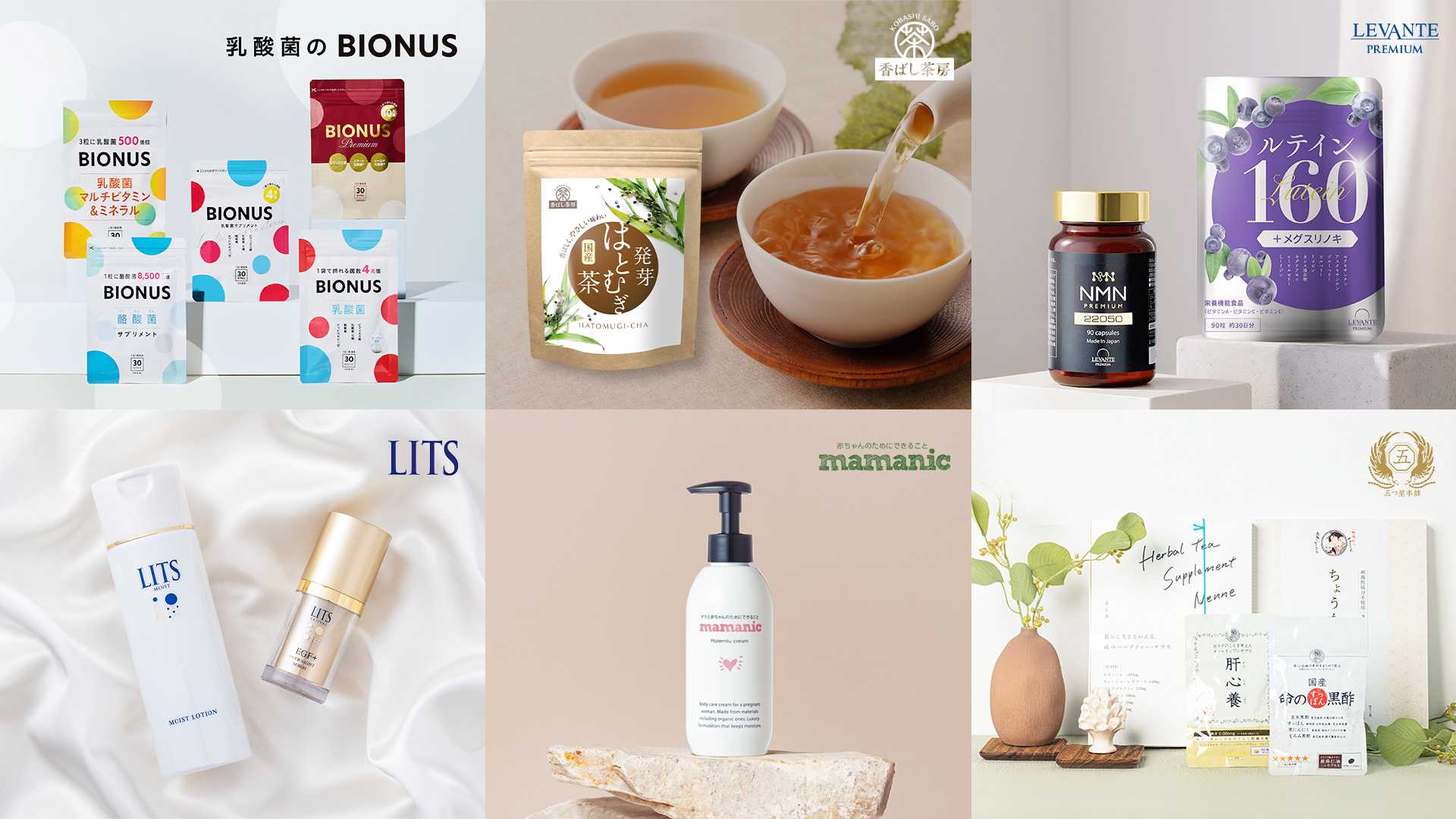 お客様や関わる人々が「ちょっと楽しく。もっと輝く」毎日を送れるよう、ヘルス&ビューティーケア製品の企画・開発・販売を行っています。自社ブランドとして、乳酸菌やビタミン等のサプリメントを展開し、体の内側から「美を成す」ためのヘルスケアとビューティーケアをサポートする「ビオナス」、次世代エイジングケアNMNを中心とする健康食品シリーズ「レバンテ」、妊活から子育てまでをトータルケアする「ママニック」、最新の皮膚科学とやさしさを融合したスキンケアブランド「セルニス」等を運営。