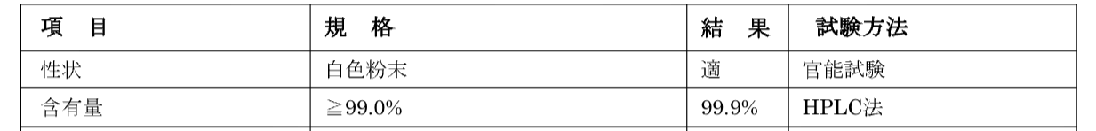 *使用原材料品質保証書より